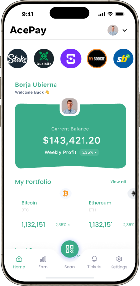Deposit in AcePay, swap your crypto, and choose your favorite casino to play. Send the funds and place your bets. Get up to 10% cashback on every wager, credited in USDC, which you can reinvest or withdraw.